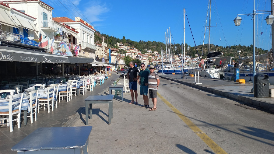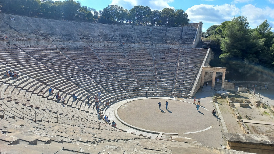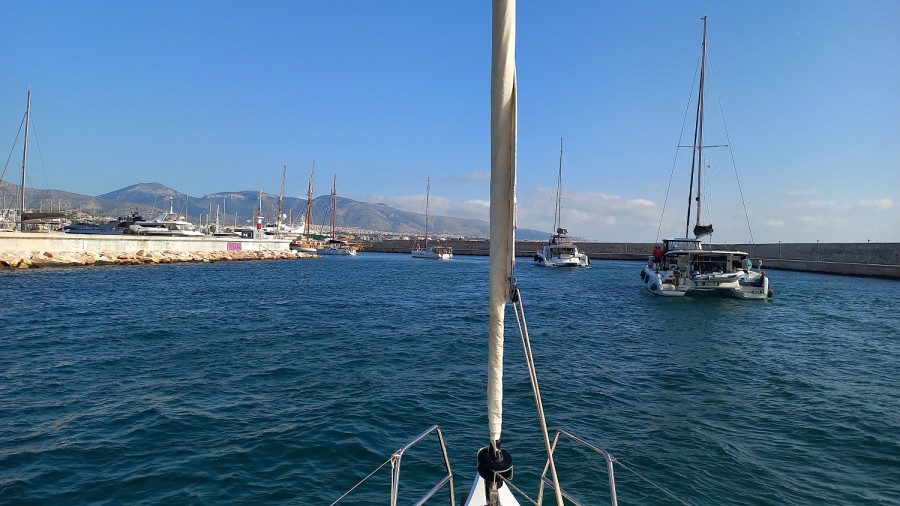 Fünf segelbegeisterte Mitglieder unseres Vereins unternahmen eine Reise in die Ägäis. Zuerst 1 Woche auf einer 12 m Charteryacht eine Tour im Saronischen Golf durch die Inselwelt südlich von Athen, dann noch anschließend 3 Tage Sight-Seeing in Athen. Übernommen wurde unser recht gut ausgestattetes Boot in der Marina am südlichen Stadtrand von Athen. Bei leider etwas wenig Wind begannen wir dann unsere Tour „von Hafen zu Hafen“ in der Inselwelt, wo wir teilweise nachts ankerten, teilweise auch am Pier lagen. Jeder Abend wurde in einem netten Lokal mit landestypischen griechischen Speisen und Getränken beendet. Das tägliche langsame Dahingleiten auf dem Wasser war eine sehr entspannte Schiffstour, wobei manchmal doch Sehnsucht nach etwas mehr Wind aufkam. Aber das konstant gute Wetter und die immer noch angenehmen 24 Grad Wassertemperatur entschädigten dafür. Vom Hafen Epidaurus aus unternahmen wir eine halbstündige Taxifahrt zum Theater des Epidauros. Diese Sehenswürdigkeit mit ihrem Halbkreis mit 14.000 Sitzplätzen fügt sich so perfekt in die Landschaft ein und zwar so gut, dass sie erst im 19. Jahrhundert wiederentdeckt und ausgegraben wurde.