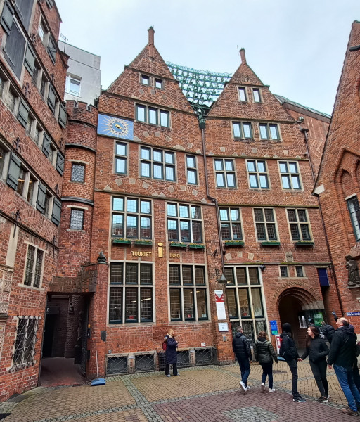 Am Samstag erwartete uns am „Roland“ um 10.00 h der Stadtführer Erich Bontenackels und führte uns durch die Bremer Altstadt und das Schnoor Viertel, dem Nieselregen zum Trotz. Der Schnoor – auch das Schnoorviertel genannt – ist ein bis in das Hochmittelalter zurückreichendes Gängeviertel in der Altstadt Bremens und zugleich der Name der Straße Schnoor in diesem Viertel. Die ältesten weltlichen Bauwerke stammen aus dem frühen 15. Jahrhundert, die Kirche St. Johann entstand im späten 14.Jhd.