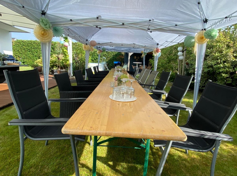 Der lauschige Garten und das Gartenhaus waren wunderbar vorbereitet für eine nette Feier.