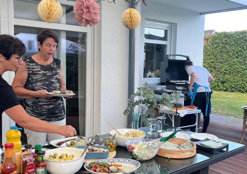 Wir trafen uns um 16.00 bei den beiden Gastgebern mit vielen Personen zur „Garten Grillparty“.